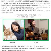 日時:2026年7月18日(土) 開場:14:00 レクチャー&ライヴ:14:30~16:30 会場:JAZZY AFTER HOURS 〒231-0006 横浜市中区南仲通り3-30-2関内新電ビル2F 電 …